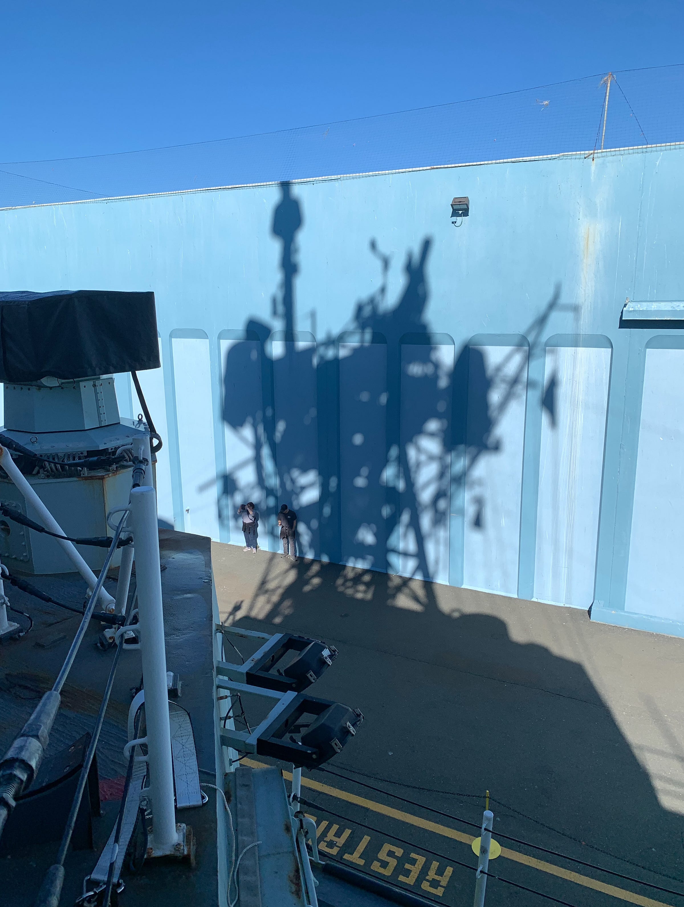 As we walked the gangplank, I felt truly concerned for the crew and their colleagues, smiling and chatting on the dockside. There are plans to build new ships—faster, more agile, with more tech packed within. Yet these plans seem flimsy in the light of unmanned craft, satellite tracking, AI-enabled targeting systems. They always say that you are preparing of the previous war; in this case, it feels as though we might be preparing for wars that were never fought. Generation Landfill was able to avoid its scheduled generational hot war that would have sharpened lethality on the whetstone of loss.